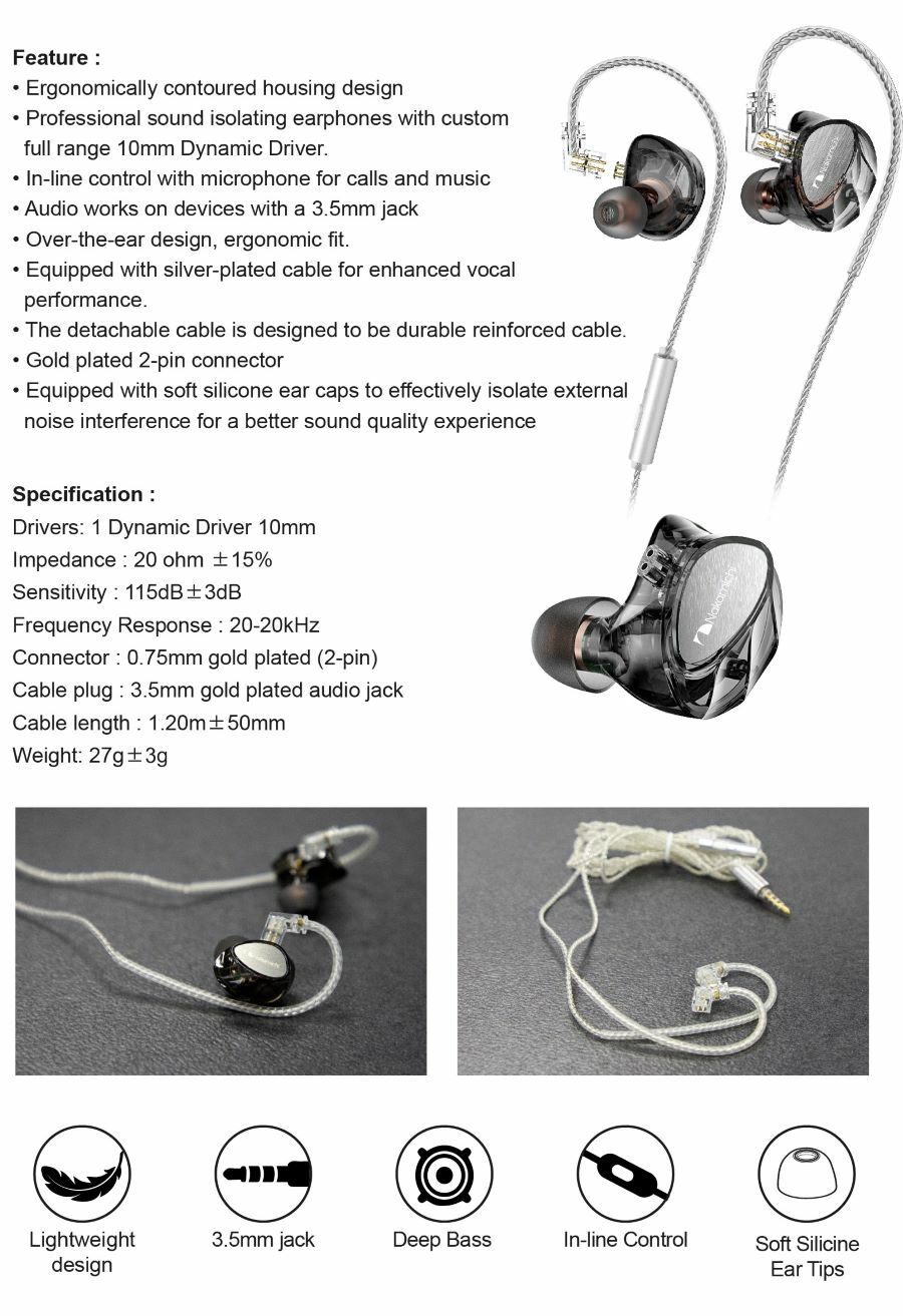 - Earphones Driver Unit : 1 Dynamic Driver 10mm