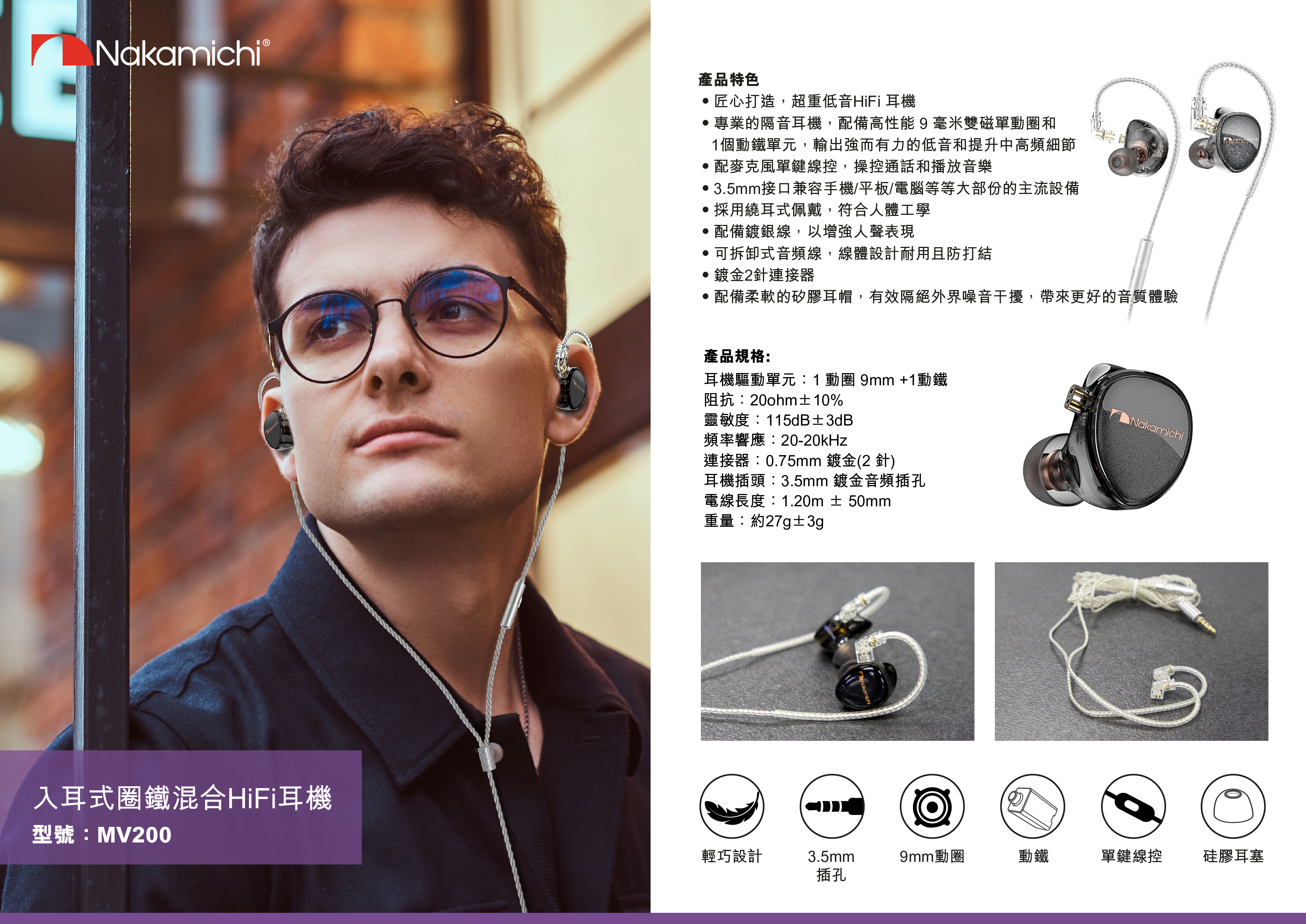 - 帶麥克風的單鍵遙控器,用於通話和音樂播放