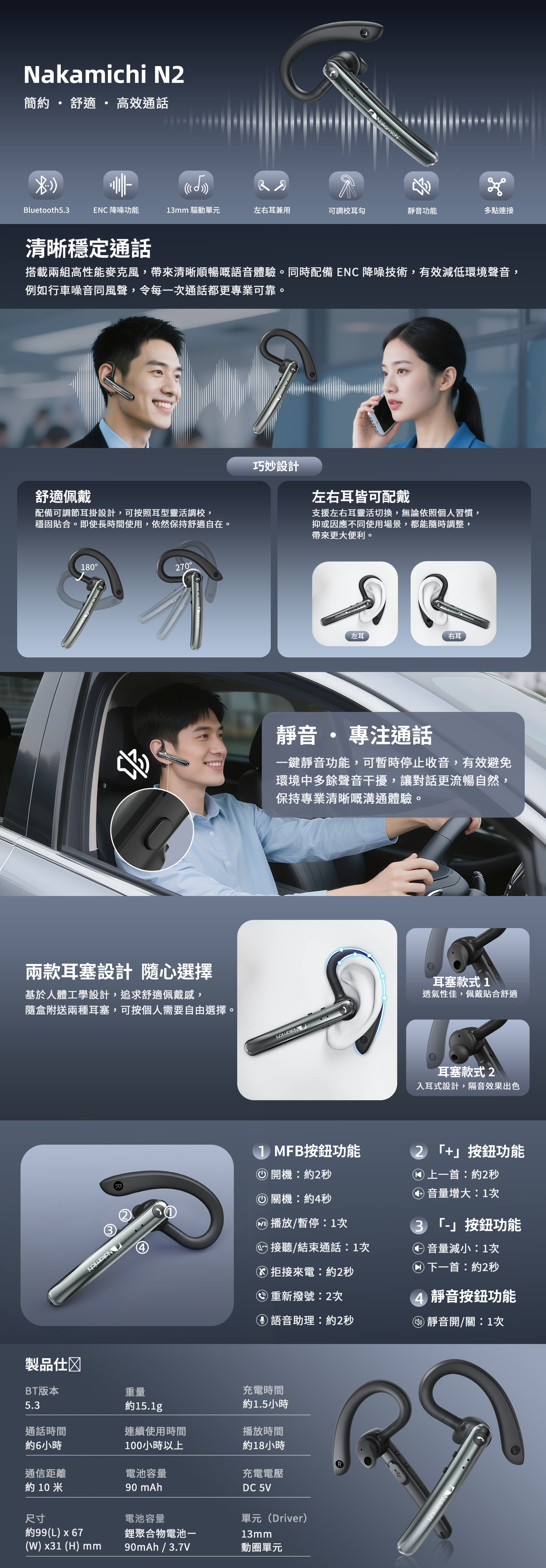 - N2 單聲道無線耳機