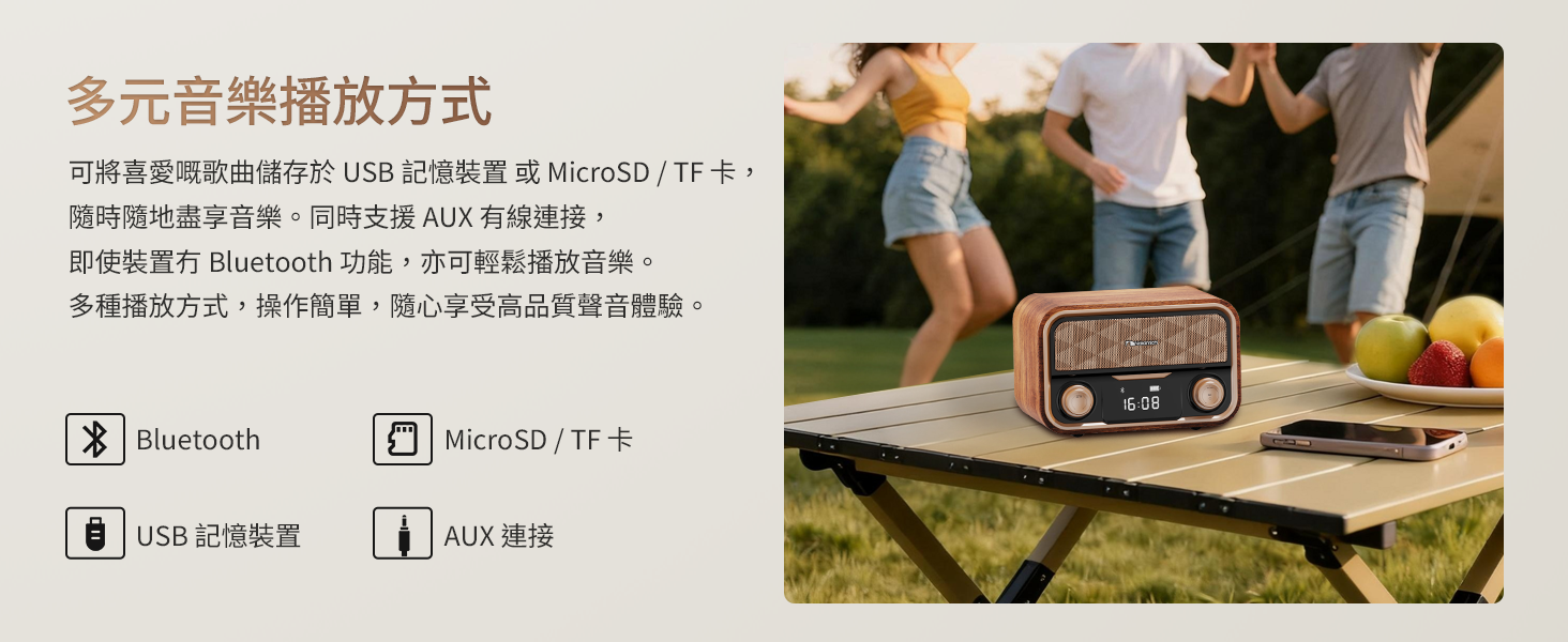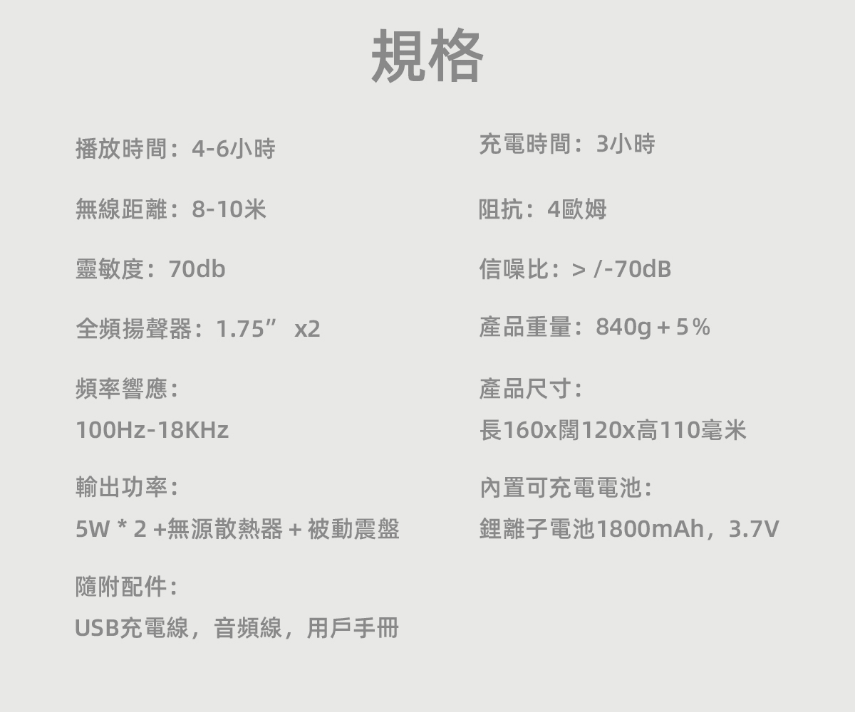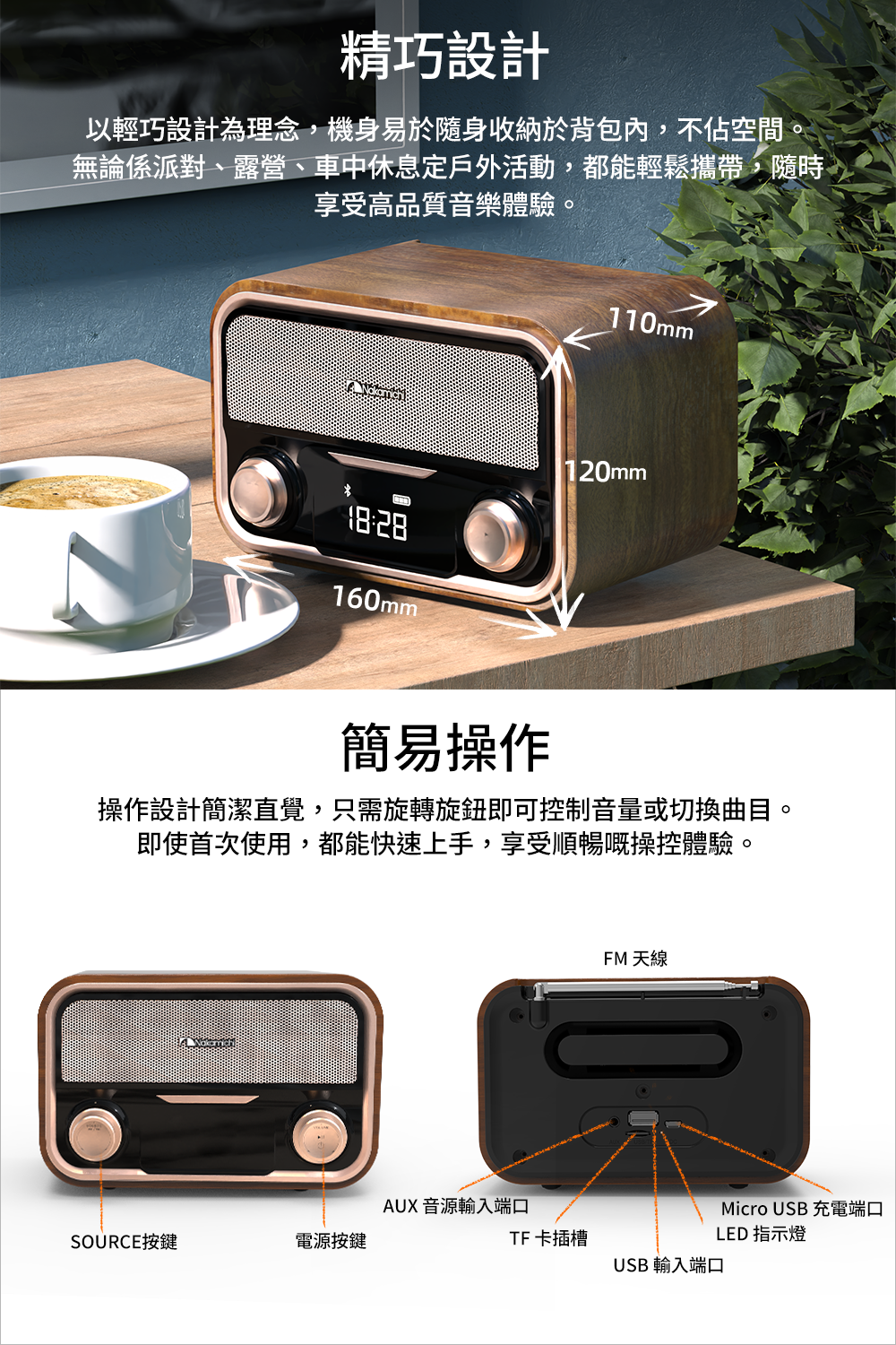 - AUX輸入(3.5mm),用於連接MP3播放器